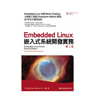 想從事 Embedded Linux 韌體開發,最苦惱沒有實務參考資訊,找到的都是昂貴的教育課程,本書正可解決這個難題!由 Embedded Linux 大廠 Mentor Graphics 資深工程師撰寫,以實務為軸心,依循 "核心改寫、系統啟動到測試、除錯" 的完整開發程序,為您深入介紹業界採用的實務技術。