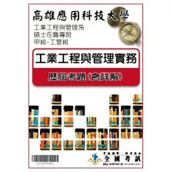 參照歷屆考古題,熟悉出題方向,是準備考試的必作功課,本教材針對高雄應用科技大學工業工程與管理系碩士在職專班-甲組(工管組)【工業工程與管理實務】提供詳細之考古題解答,除了精闢、淺顯易懂的考古題詳答外,更提供具提點作用的【答題切入點】,讓您充分掌握考題方向,不只給您魚吃還教您如何釣魚。考古題題目沒時間下載嗎?沒時間翻書找考古題答案嗎?由EMBA/碩士專班名師編撰解析的超實用考古題詳解,是您考前必讀的最佳工具教材,藉由參考歷屆考古題分析各類不同考題的正確思路,多做考古題,釐清面對EMBA/碩士專班考試的正確思路,必能在面對考試時成竹在胸,執筆作答無往不利,獲取高分!
