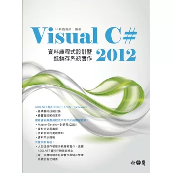 本書以Visual Studio 2012 來做為程式開發工具,並使用最受歡迎C#來做為程式語言,透過最新的ADO.NET Entity Framework 架構,存取位於資料庫伺服器上的資料,以發展完整的資料庫應用系統。
