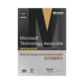 MOAC(Microsoft Official Academic Course)的MTA Exam 98-363 Web Development Fundamentals是為了涵蓋所有MTA 98-363 考試的學習目標而設計的"核心知識"及"核心技能"。MTA考試目標已經在教材中標示出來。許多教學特色也已經在微軟官方教材(MOAC)中開發完成。提出了廣泛的程序知識和技術概念,編織成整本教科書,為學生和教師提昇挑戰性而獲得一致好評。