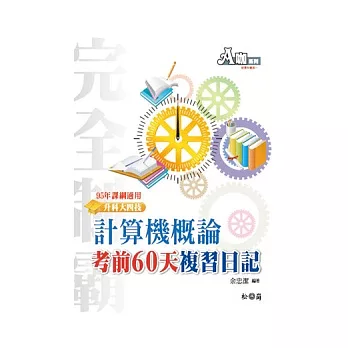 2.本書內容將計算概論相關課程切割為60天的單元,讓同學每天按部就班閱讀,逐漸累積應考實力。並在各個單元後面附上相關試題,測試學習效果,並培養臨場的應變能力。