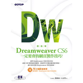 博客來網路書店也有推薦[跟我學Dreamweaver CS6一定要會的網頁製作技巧:適用CS6/CS5/CS4(附教學影片、試用版、範例檔)]喔!